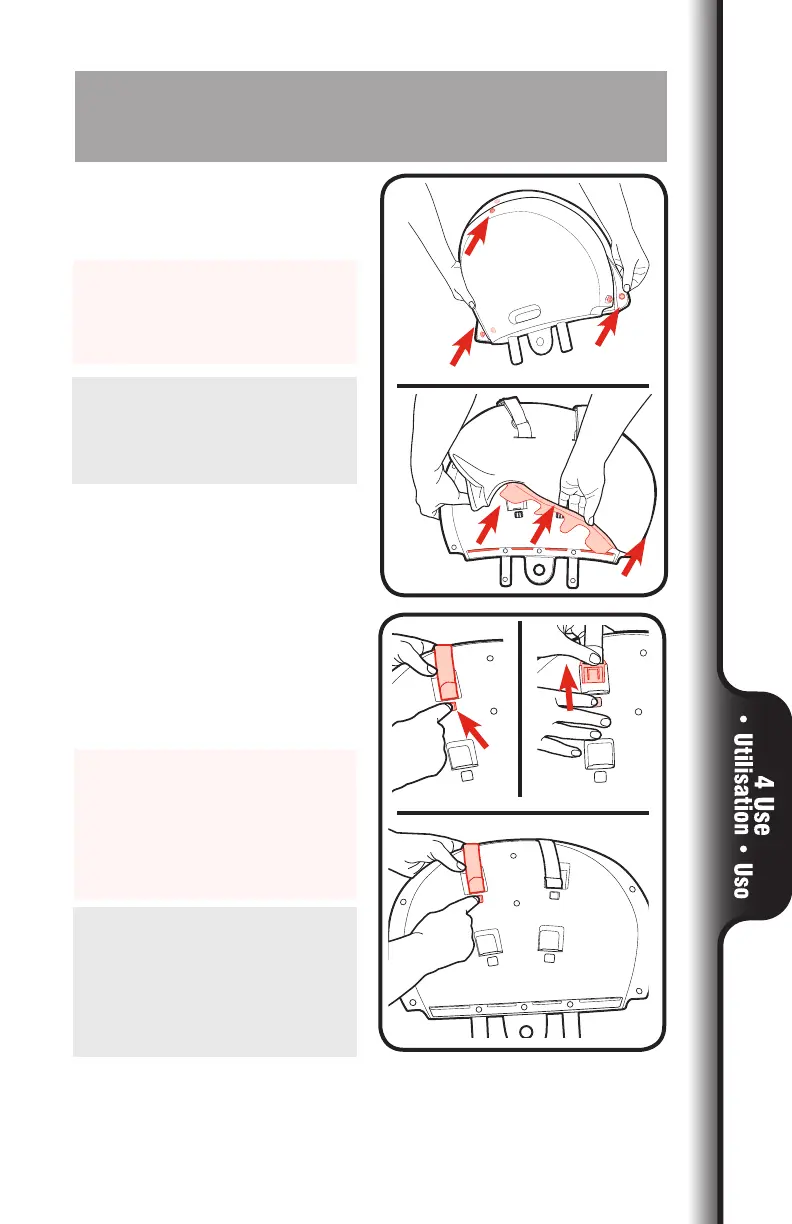 To adjust harness strap height • Réglage de la hauteur des