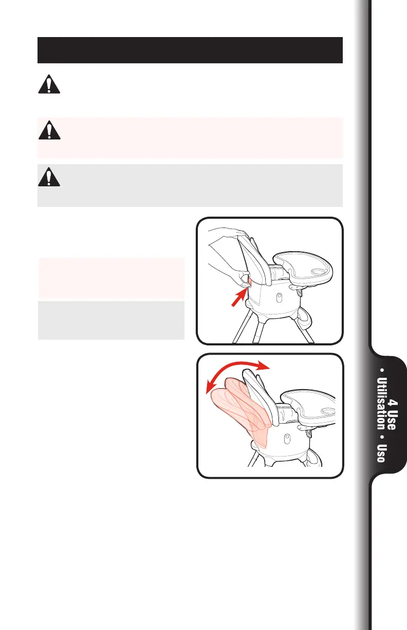 NE PAS ajuster l’inclinaison de la chaise haute lorsque l’enfant s’y trouve.