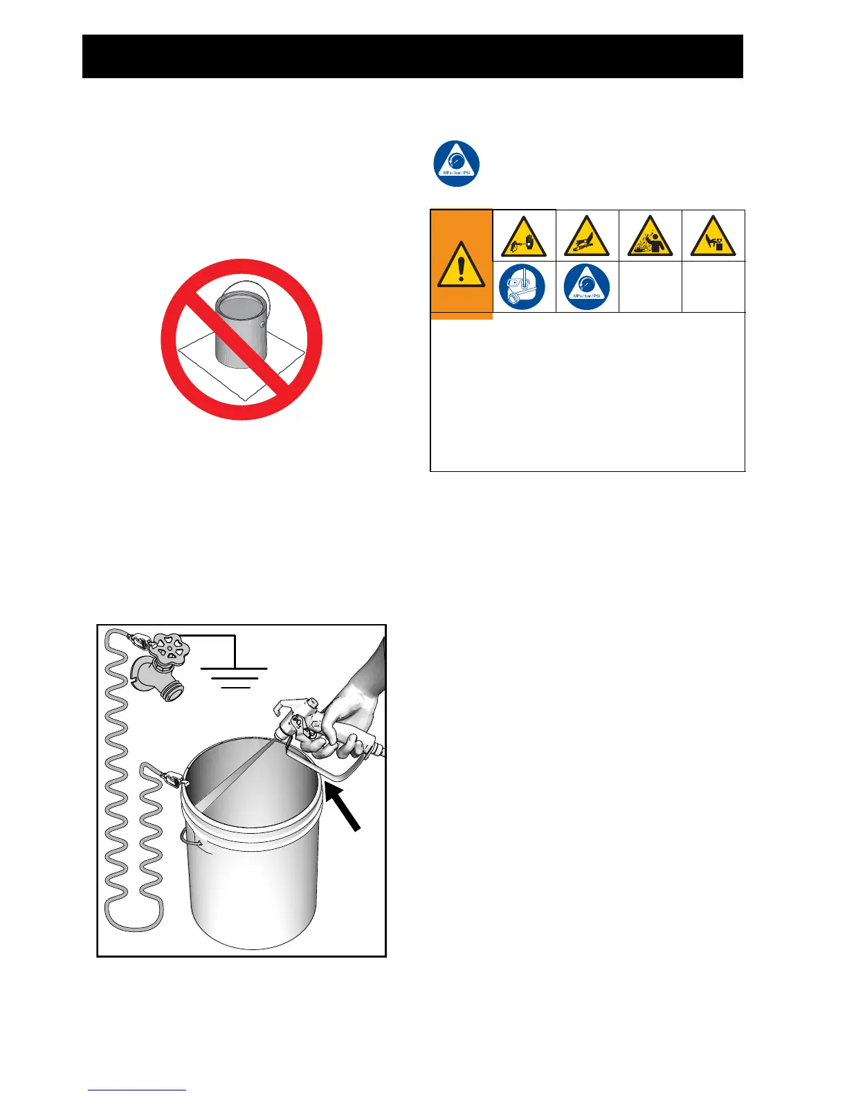 Always ground a metal pail: connect a