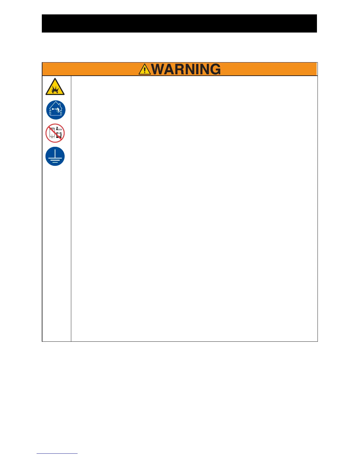 • Sprayer generates sparks. Keep pump assembly in a well ventilated area at