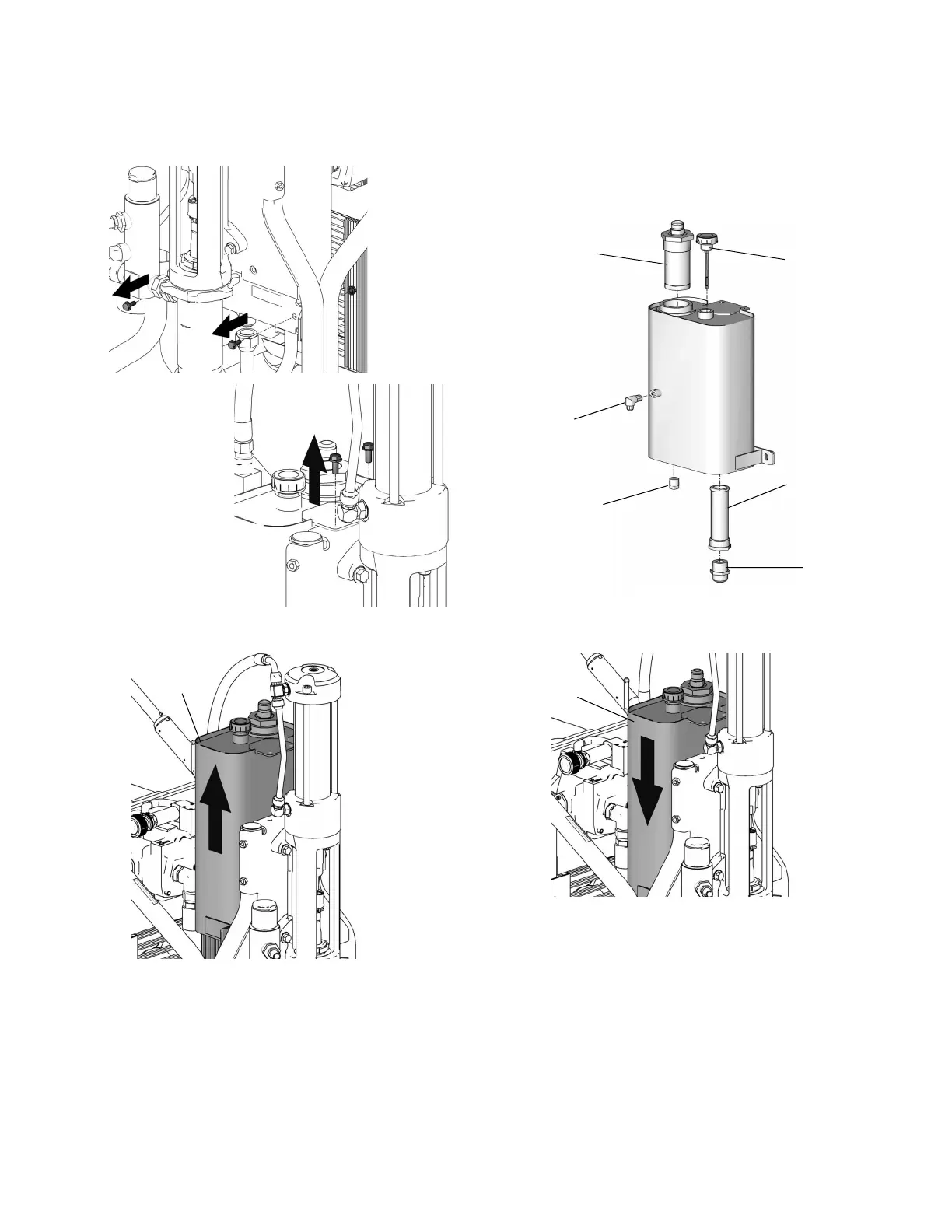 9. Lift reservoir (64) out of frame.