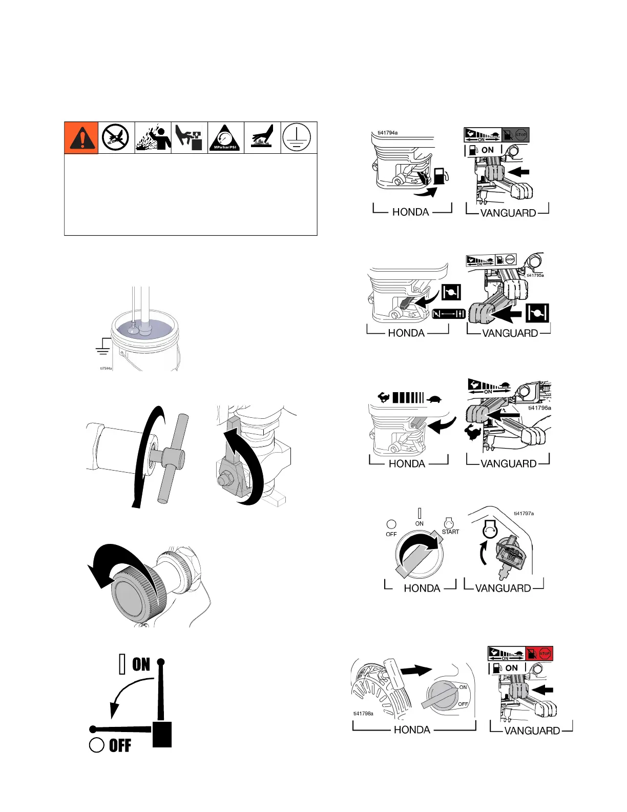 ON. Pull starter rope or turn ignition key.