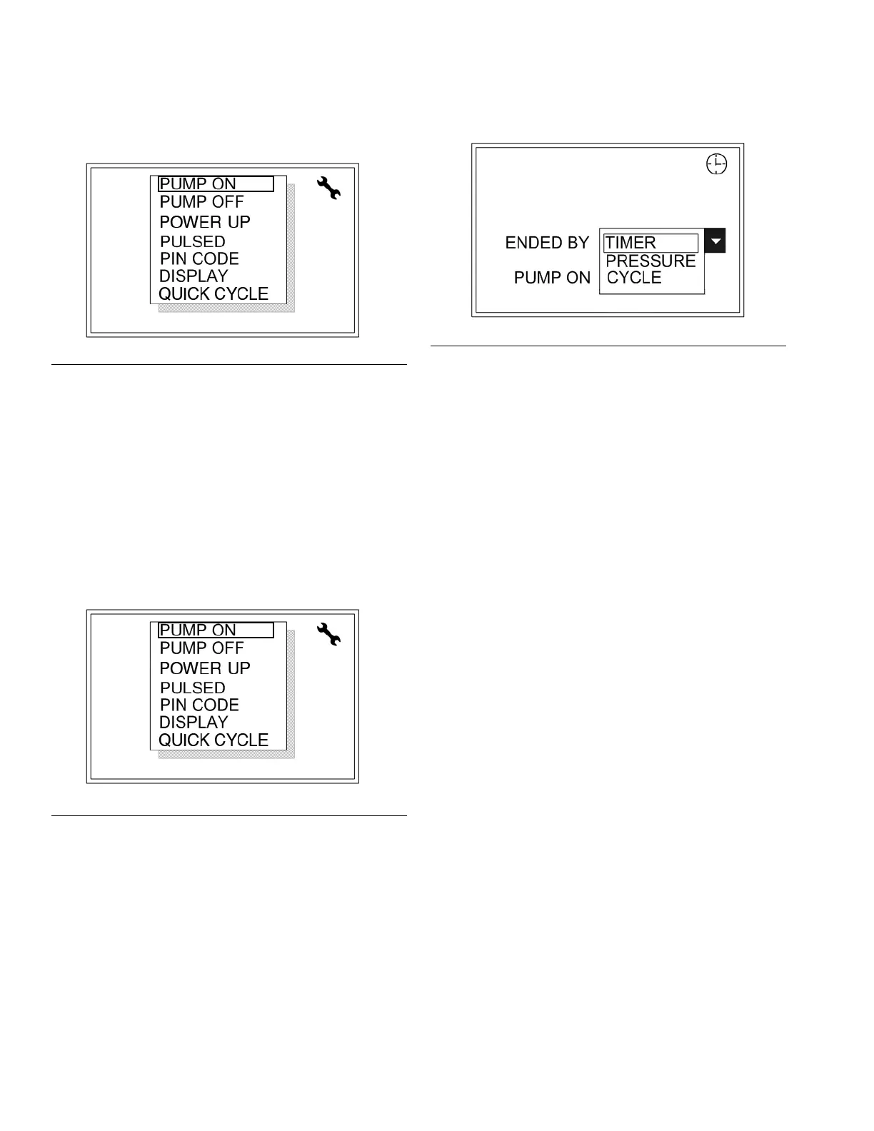 2. Press ENTER to display the PUMP ON setup