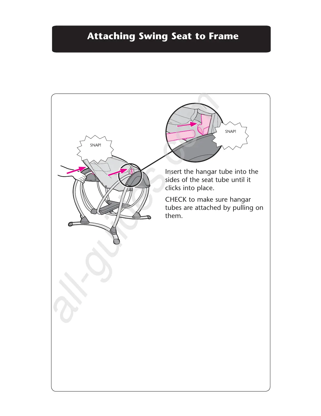 Graco Glider LX - Attaching Swing Seat to Frame; Insert Hangar Tube into Seat Tube; Verify Hangar Tube Attachment