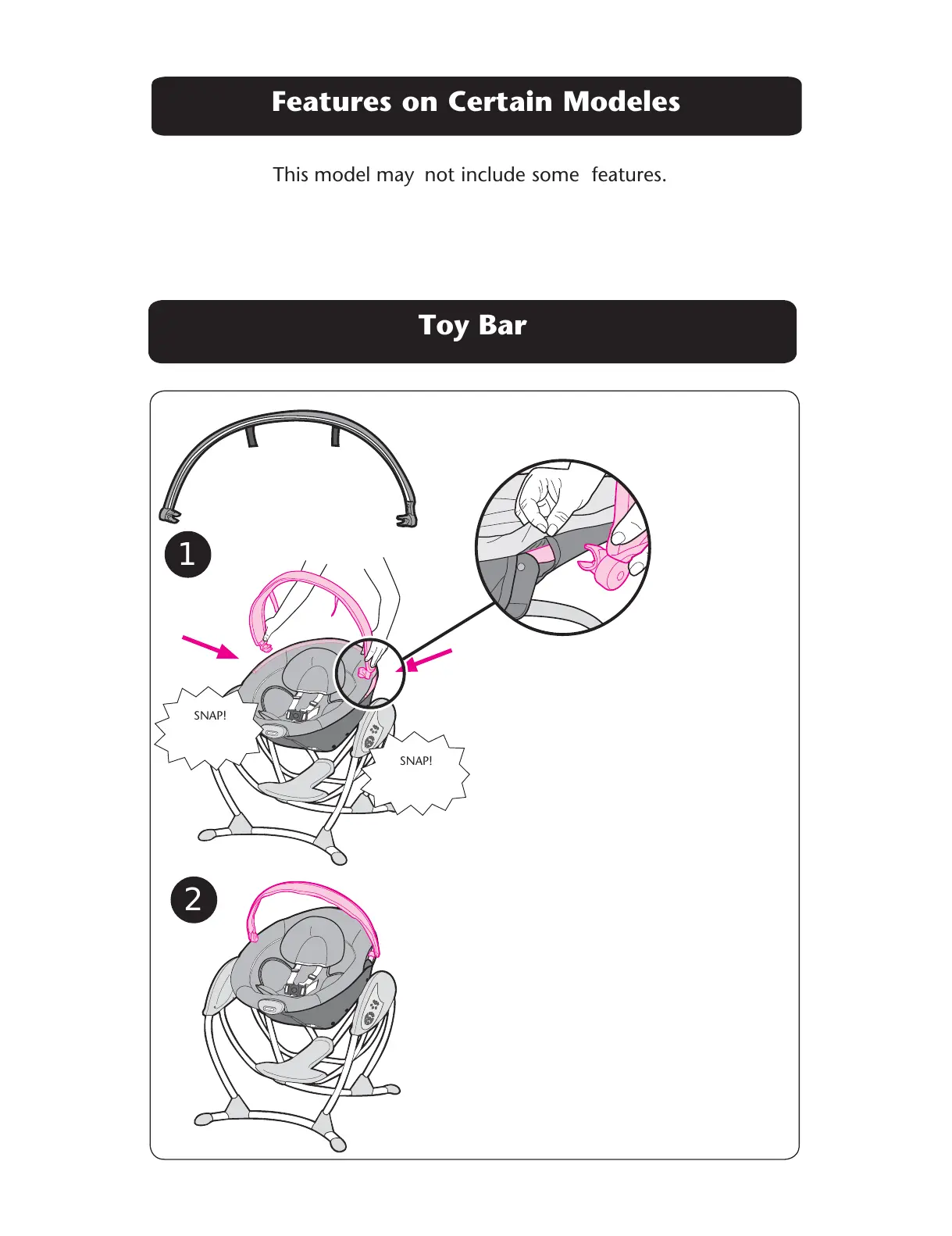 Graco Glider LX - Features on Certain Models; Toy Bar Assembly; Attach Toy Bar to Seat