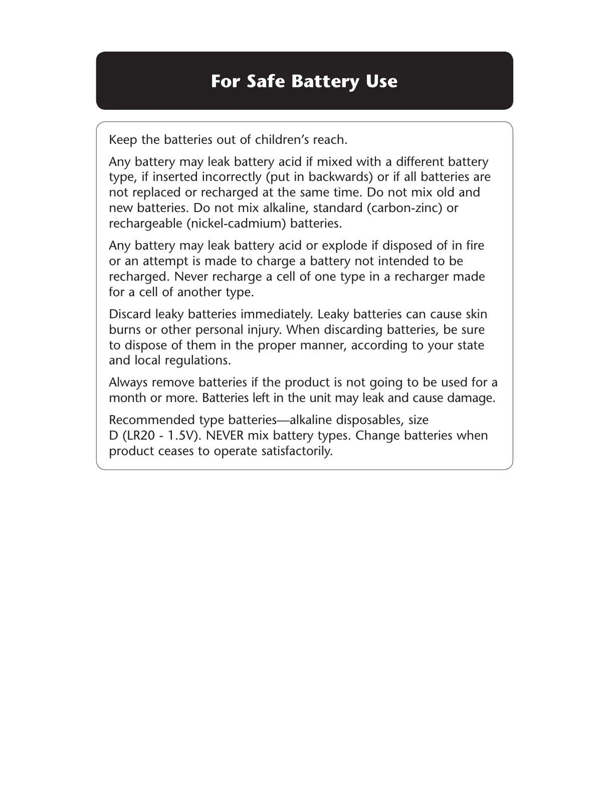 !LWAYSREMOVEBATTERIESIFTHEPRODUCTISNOTGOINGTOBEUSEDFORA