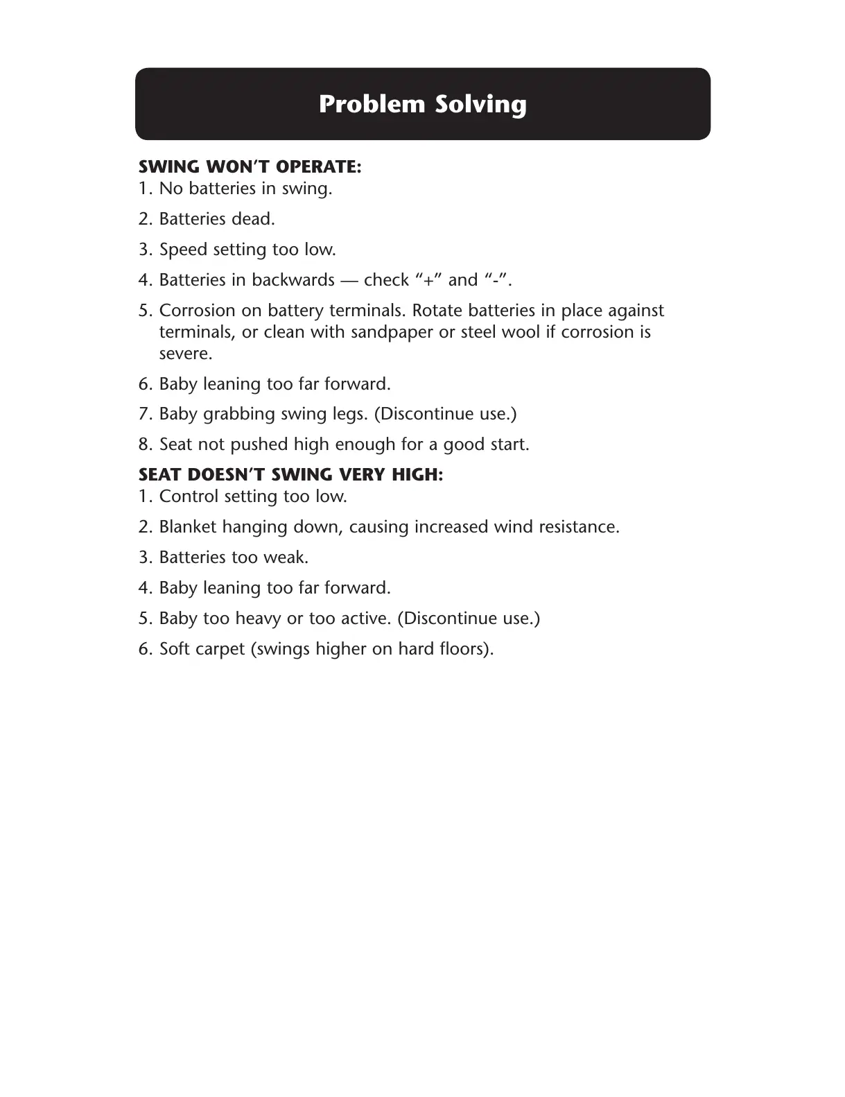 SWING WON’T OPERATE: