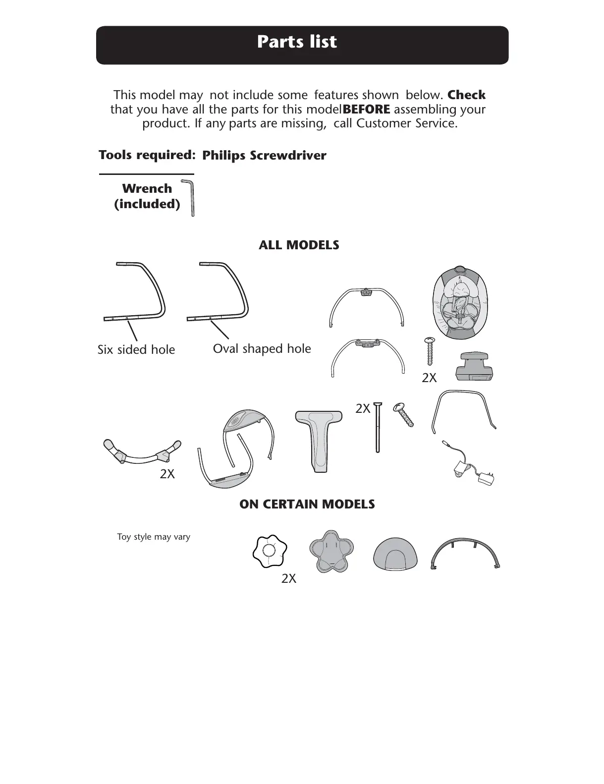 Graco Glider LX - Parts List and Tools; Tools Required for Assembly; Parts Included for All Models; Optional Parts for Certain Models