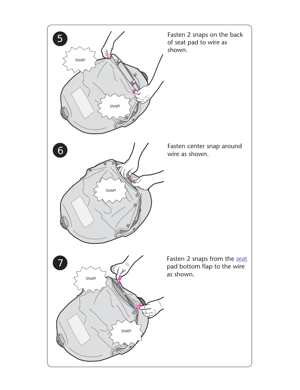 Graco Glider LX - Fasten Back Seat Snaps; Fasten Center Seat Snap; Fasten Bottom Seat Flap Snaps