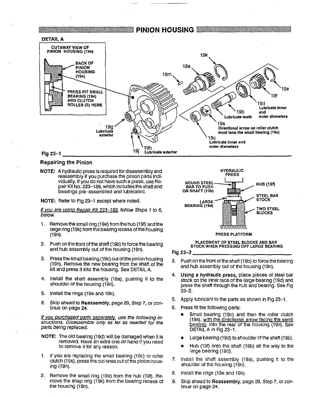 clutch (19s), press the old ones out of the pinion hous-