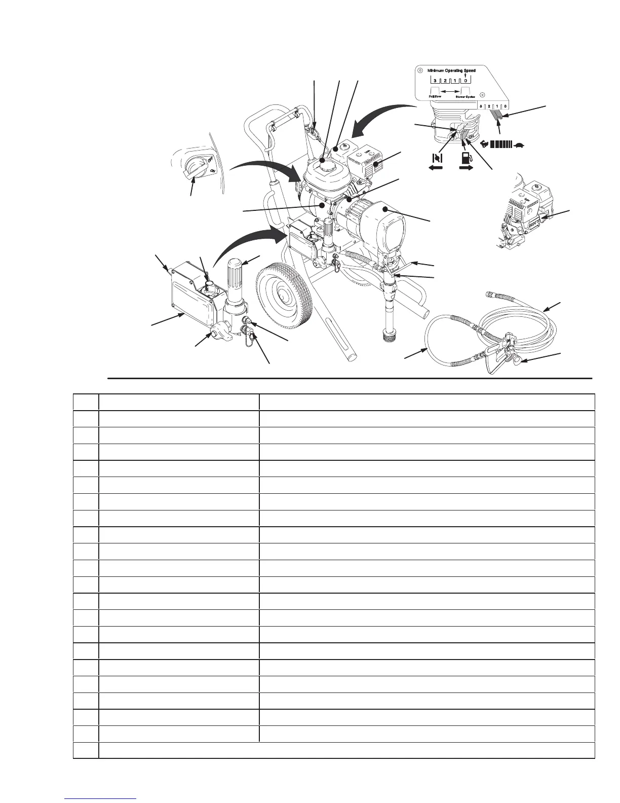 J Throttle Lever* Adjusts engine speed for large or small orifice spray tips