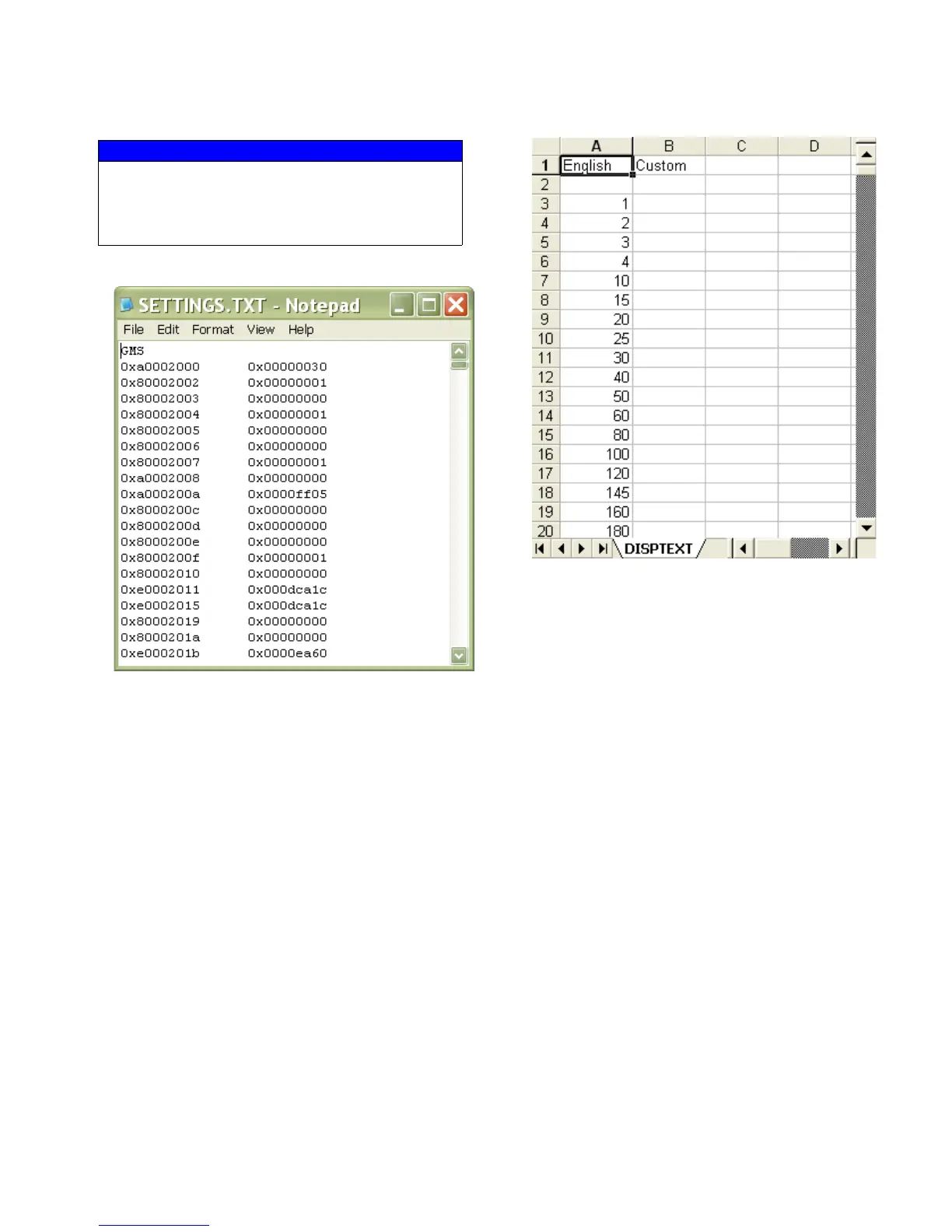 Example SETTINGS.TXT File Example DISPTEXT.TXT File