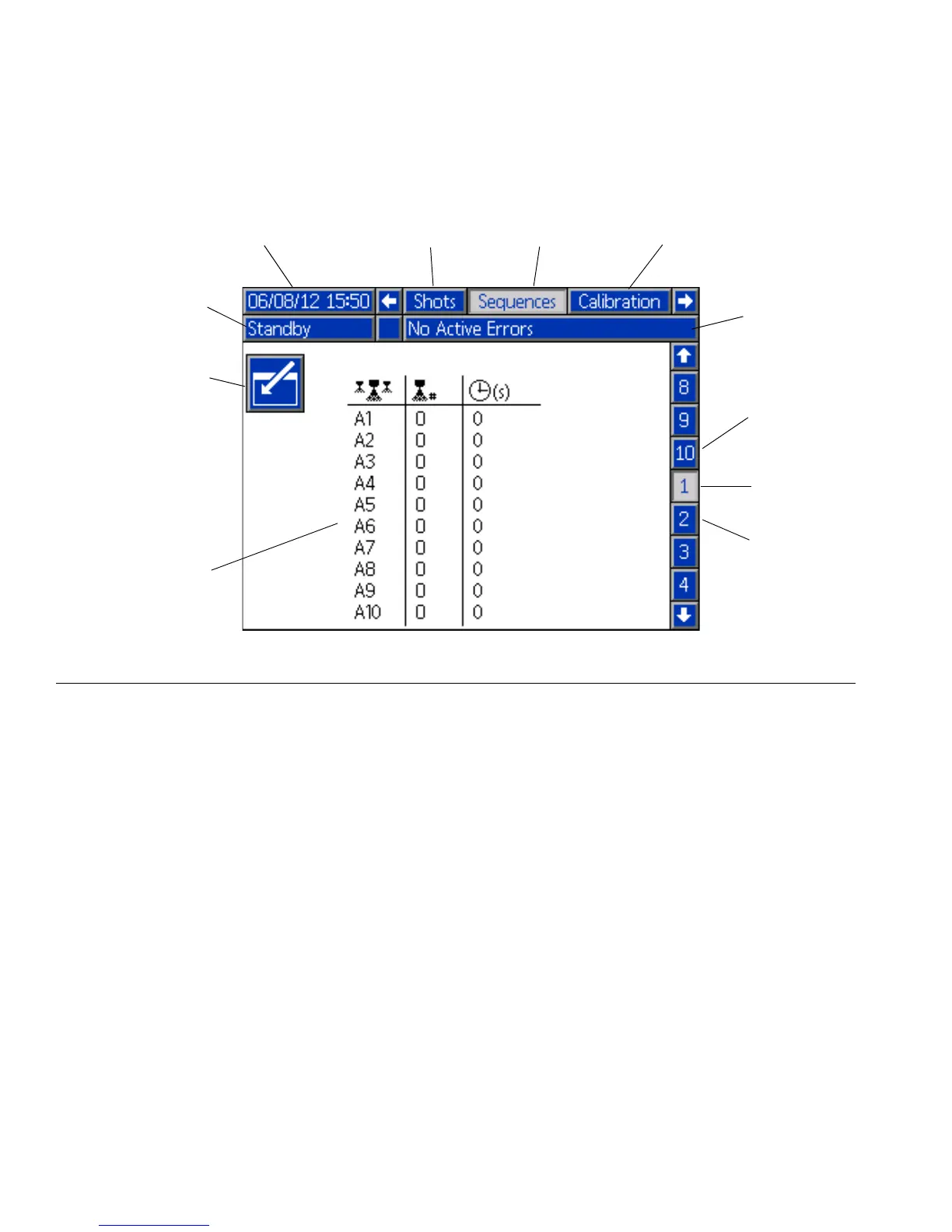 The following figure calls out the navigational, status, and general informational components of each screen. For