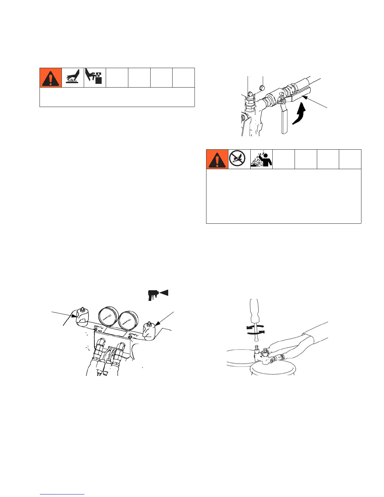 waste containers. Open gun fluid valves A