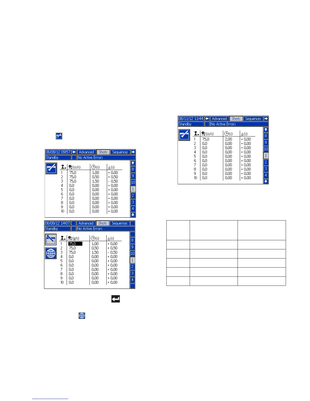 A 75 cc/s shot is defined to dispense for 2 seconds.