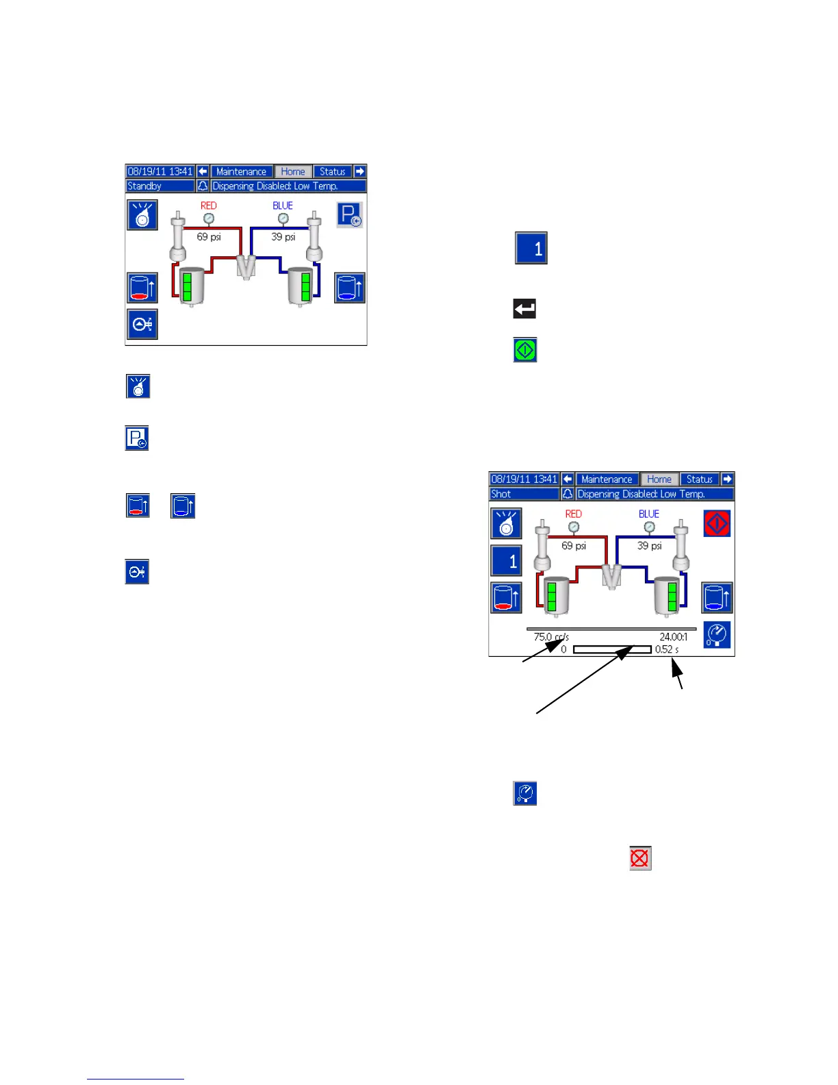 4. Press to initiate a dispense. The system will go