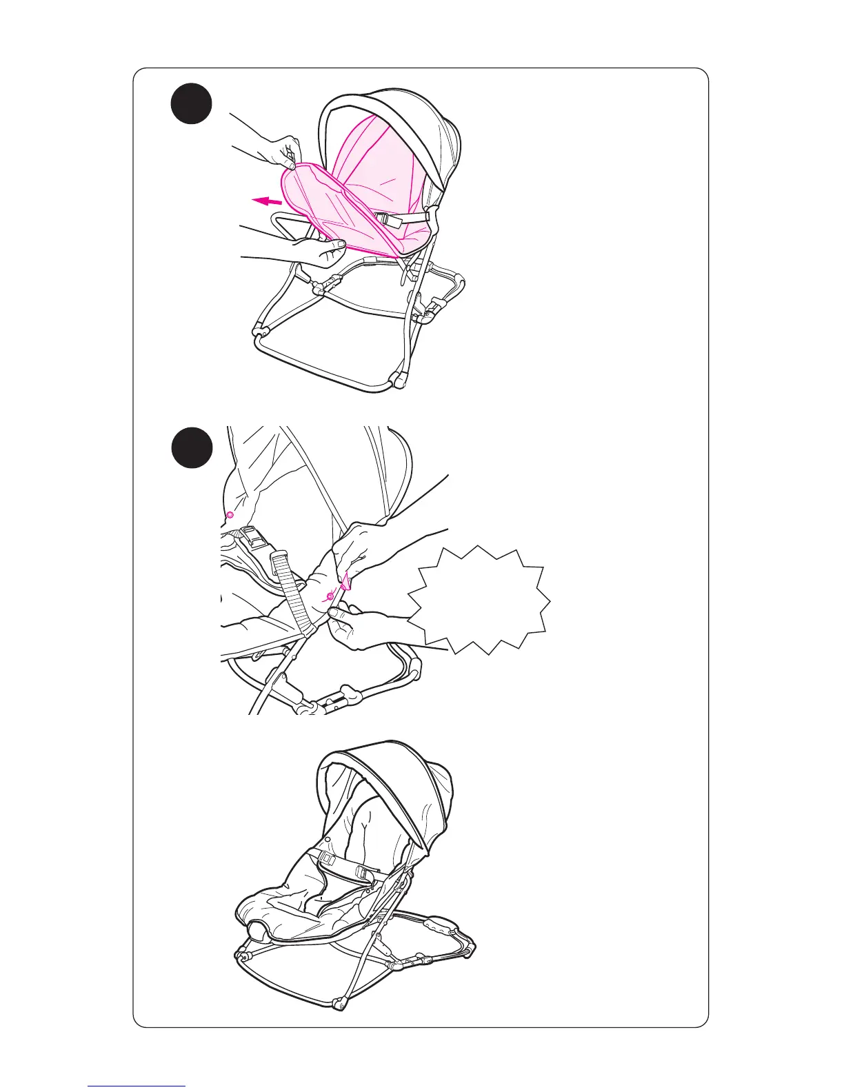 Graco High Chair - Completing Seat Pad Attachment; Step 3: Fit Seat Pad; Step 4: Secure Seat Pad Snaps