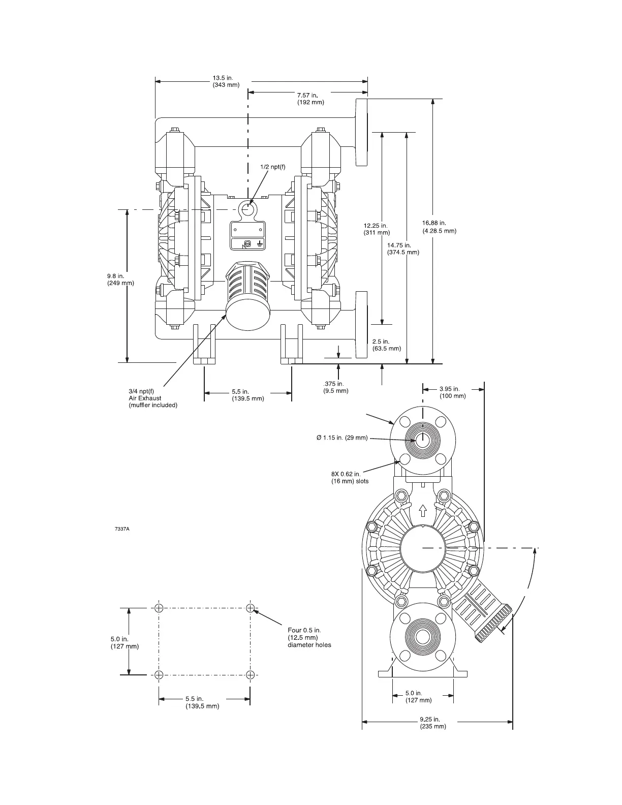 Graco Husky 1040 - Dimensional Drawings; Pump Dimensions and Views; Pump Mounting Hole Pattern