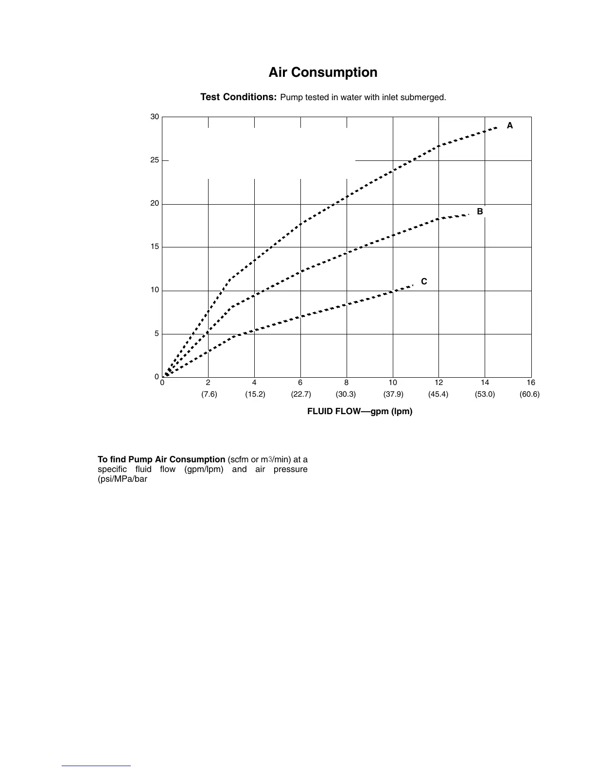 To find Pump Air Consumption (scfm or m/min) at a