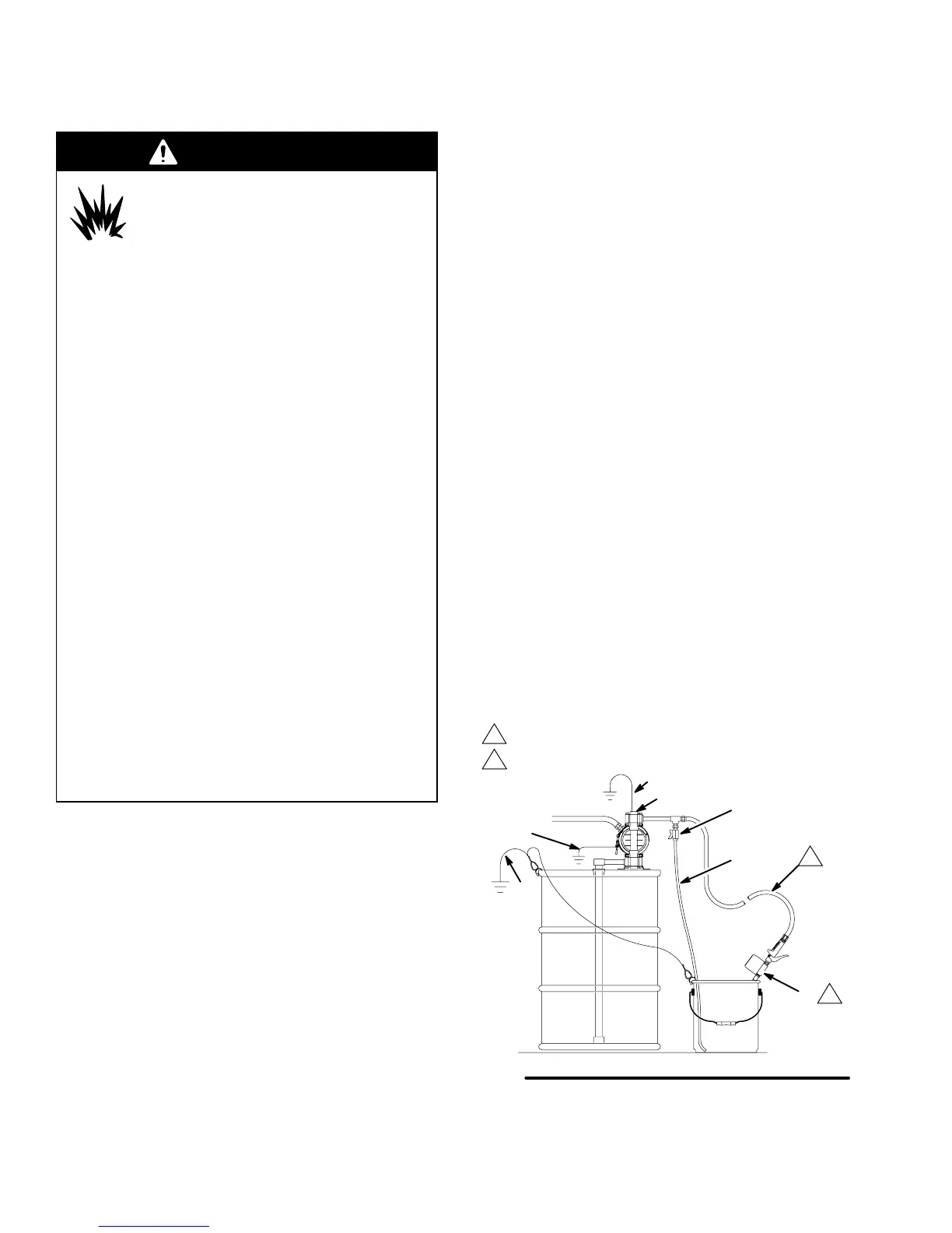 To reduce the risk of static sparking, ground the pump
