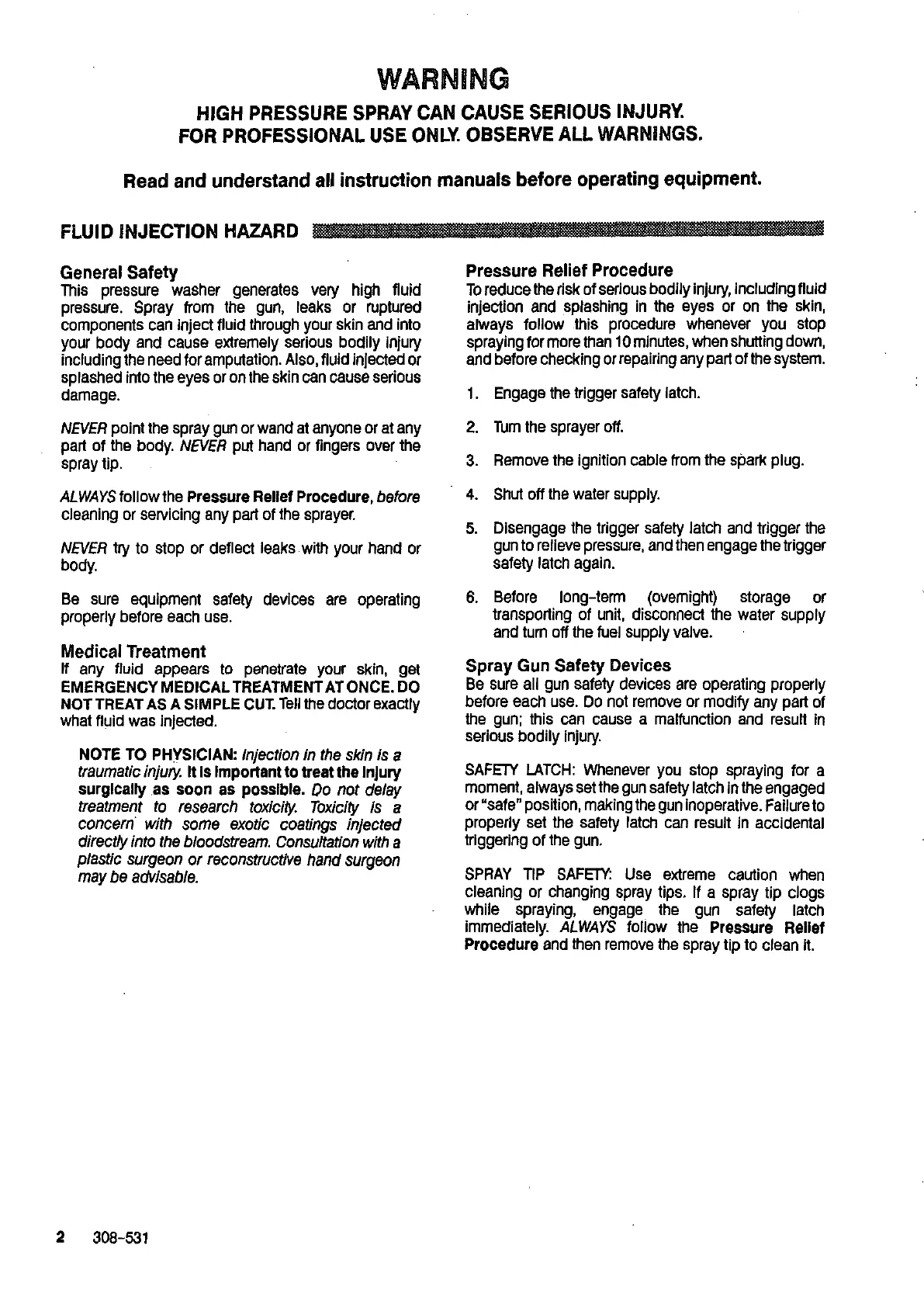 pressure. Spray from the gun, leaks or ruptured