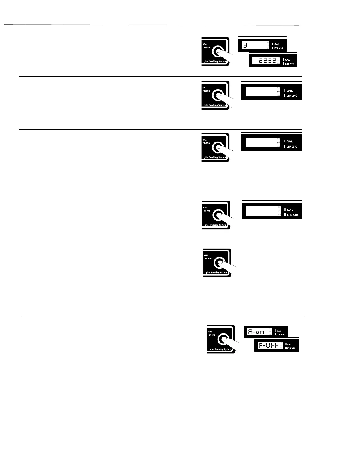 8. Short press DTS button to select volume measure (gal, liter).