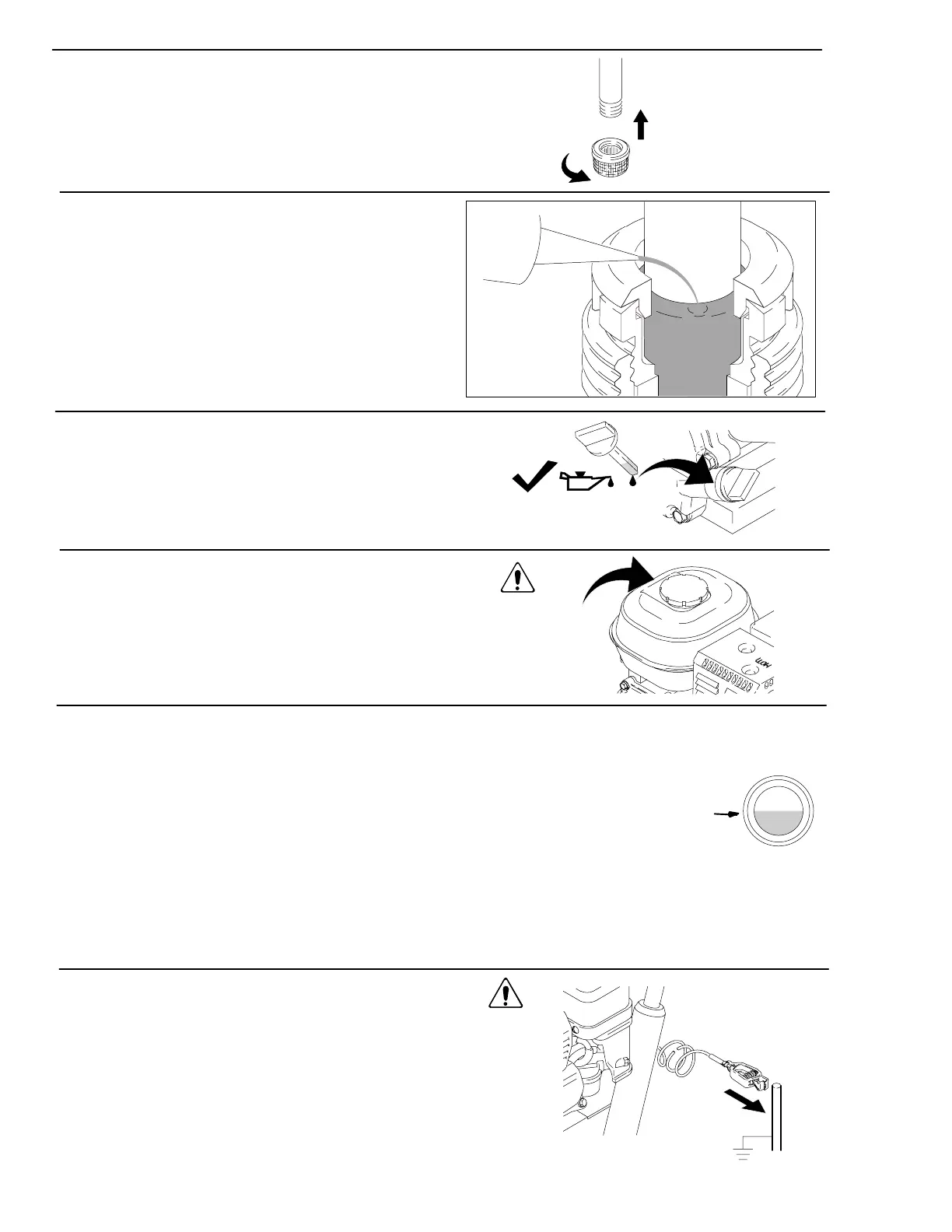7. Check engine oil level. Add SAE 10W–30 (summer) or