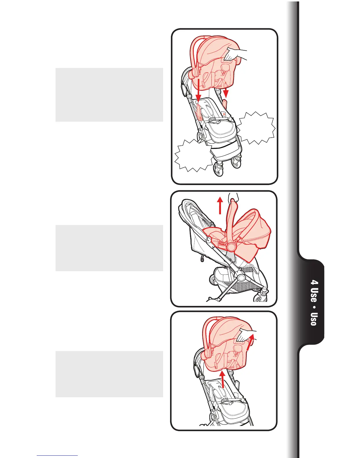el cochecito y empuje el asiento