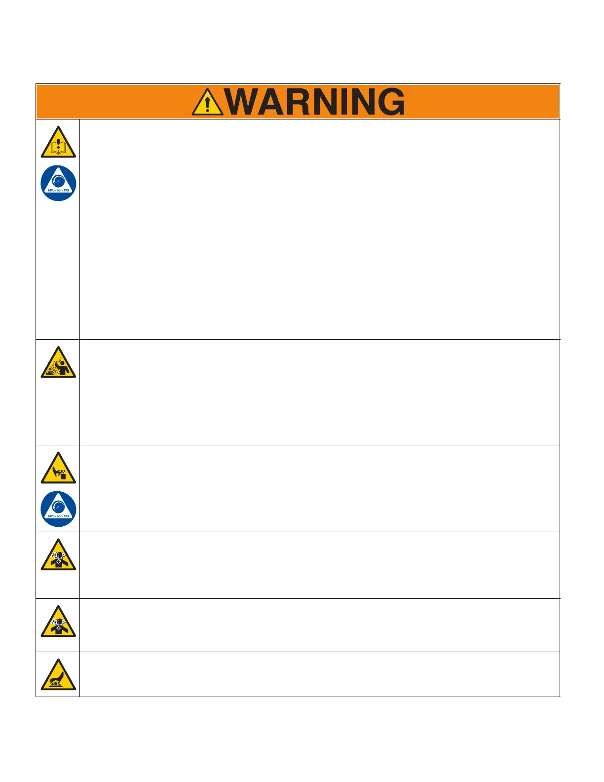 • Pressurized equipment can start without warning. Before checking, moving, or servicing equipment, follow