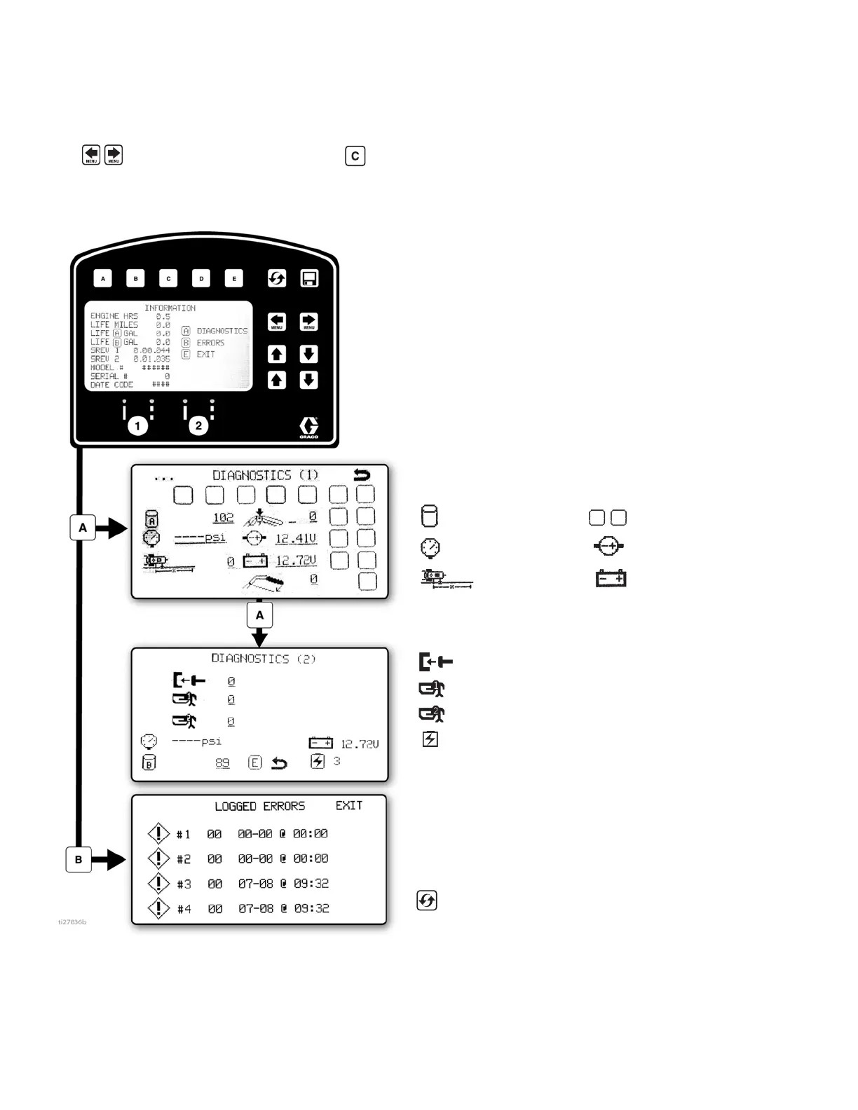 Displays and logs life data and striper information.