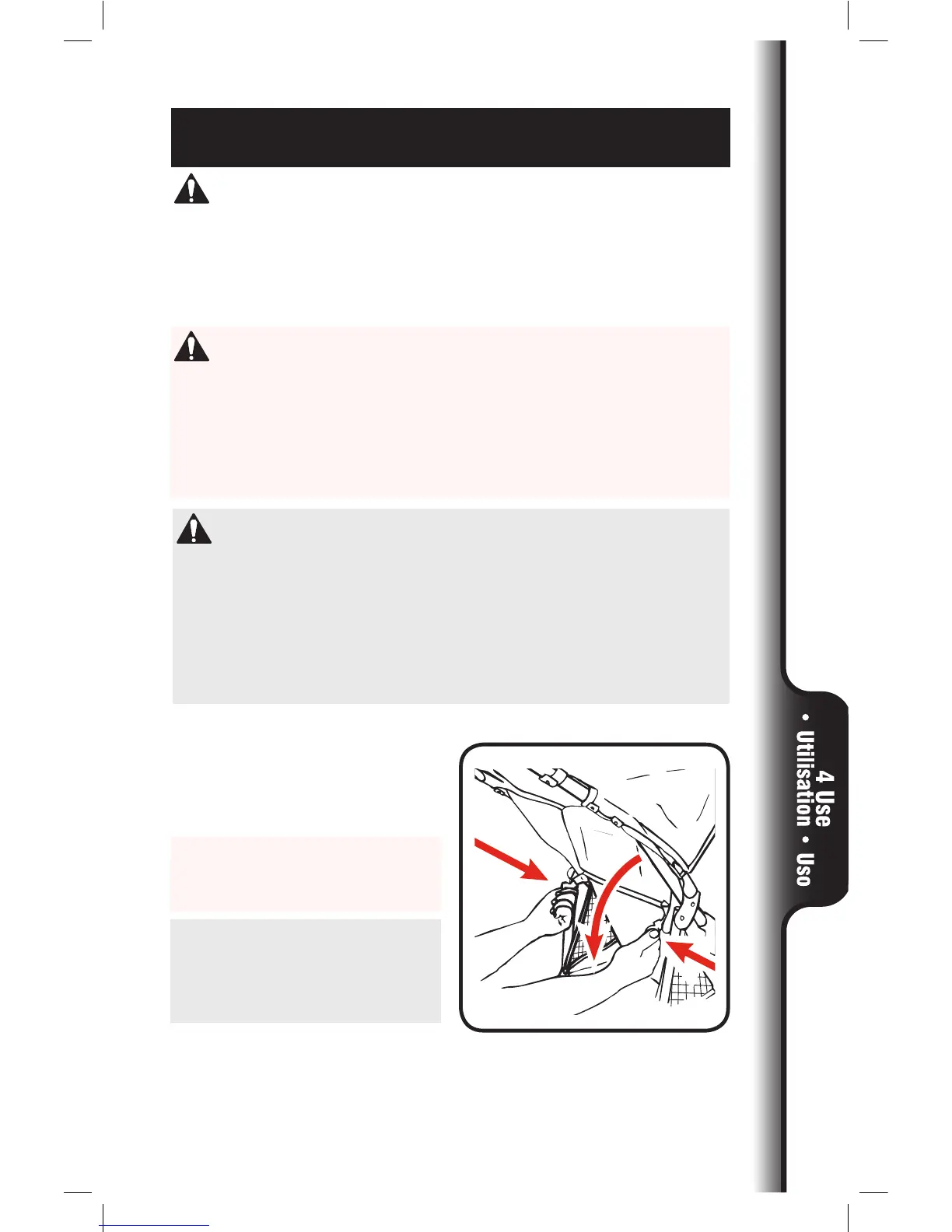 When making adjustments to the stroller seat, make sure child’s head, arms,