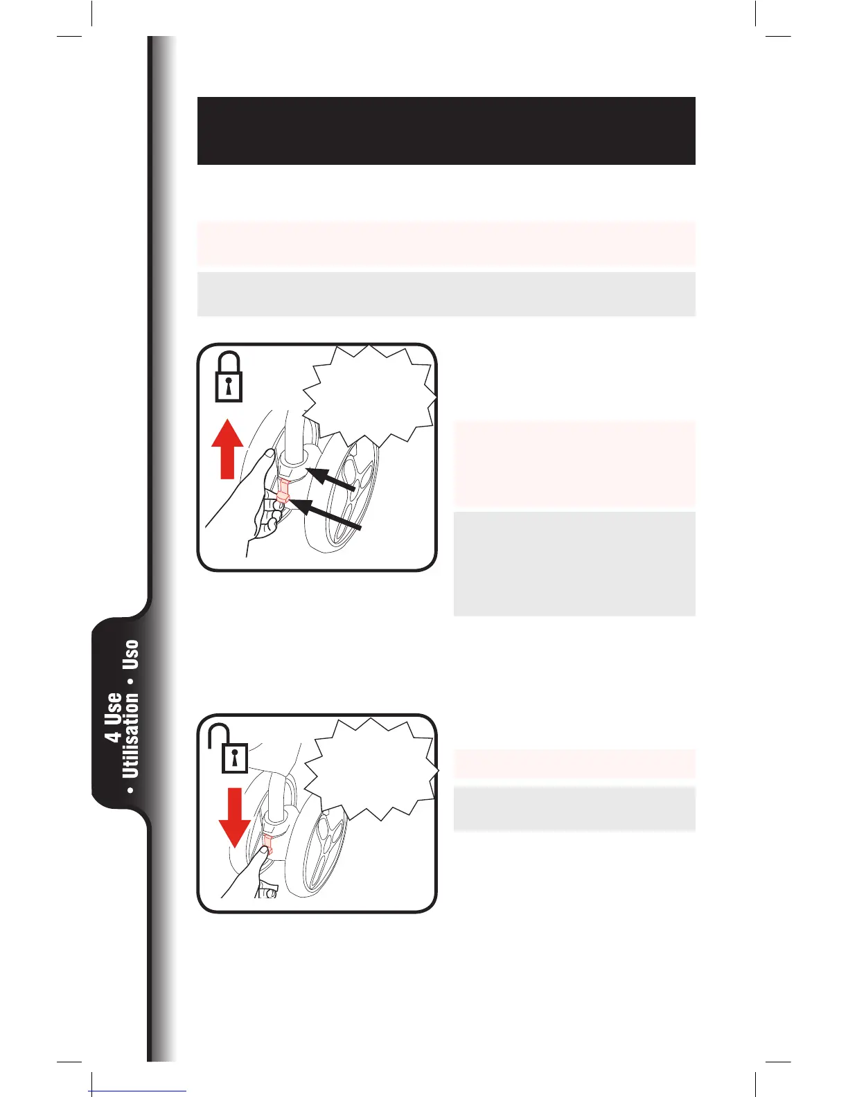 Front swivel wheels lock for use on uneven surfaces such as grass, stones