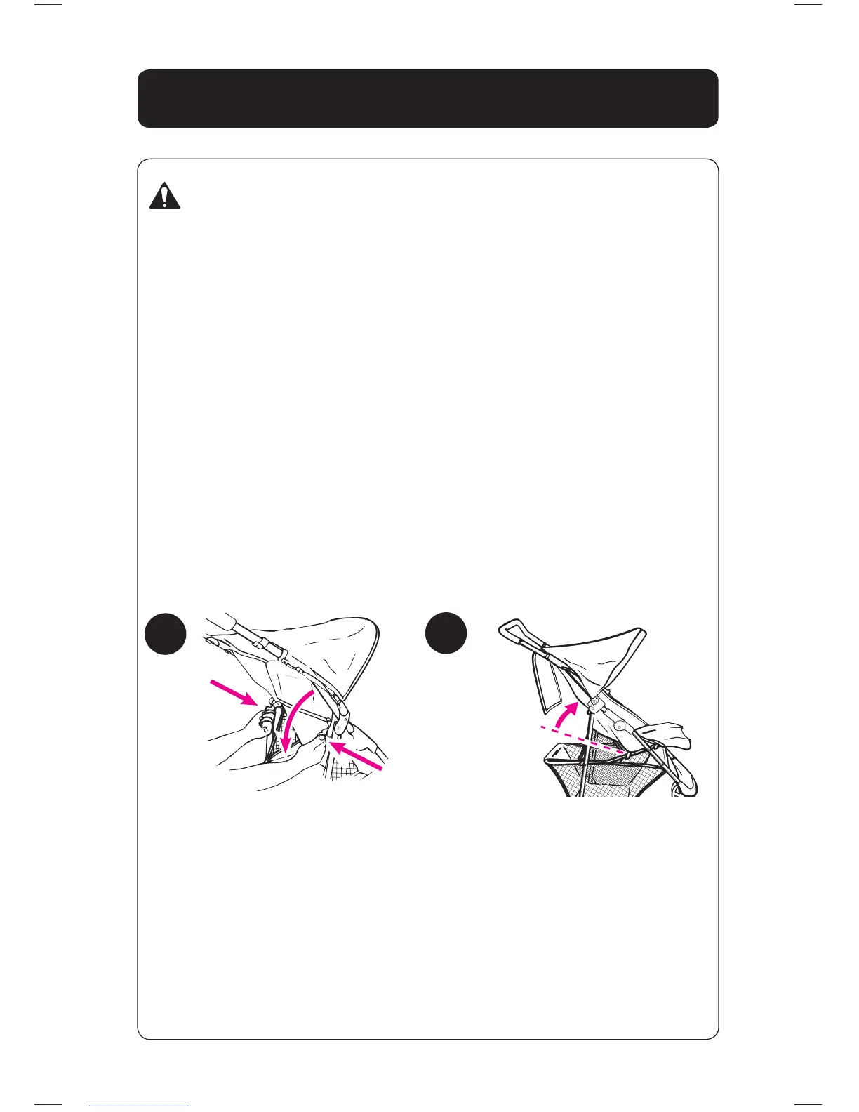 When making adjustments to the stroller seat, make sure child’s head,