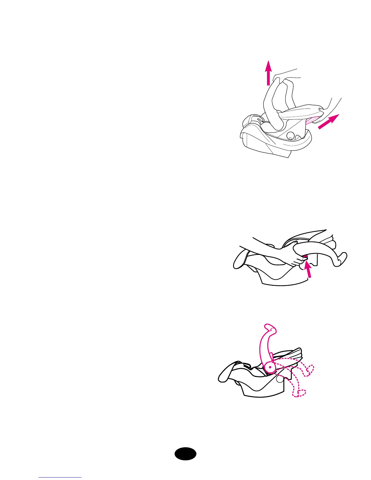 To remove infant restraint, squeeze handle at