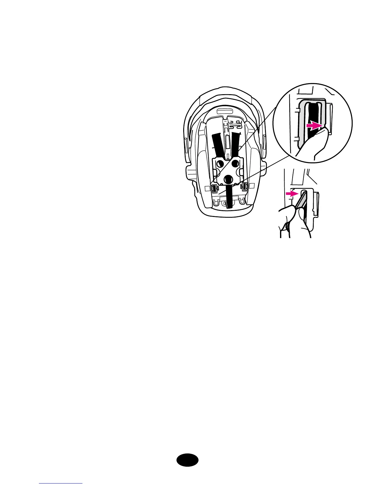 Reverse steps to reinstall seat pad. Check that harness system is not