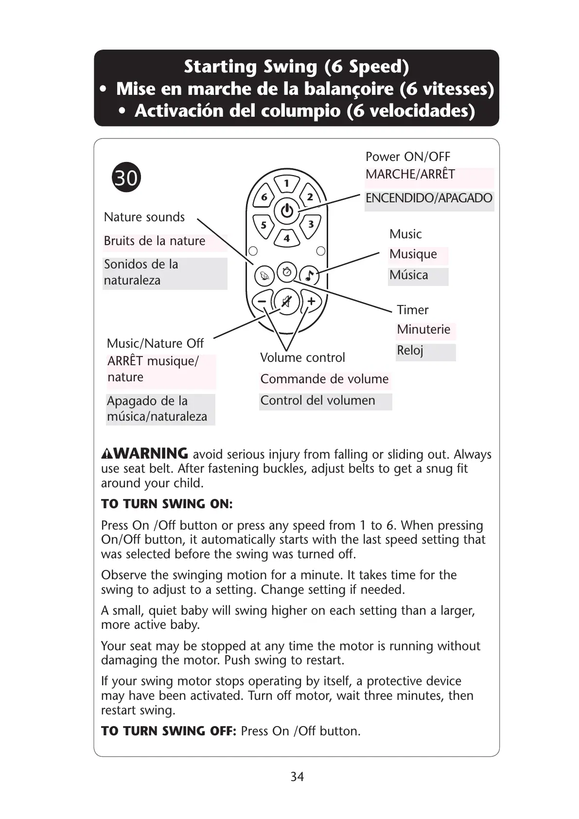 TO TURN SWING OFF: 0RESS/N/FFBUTTON