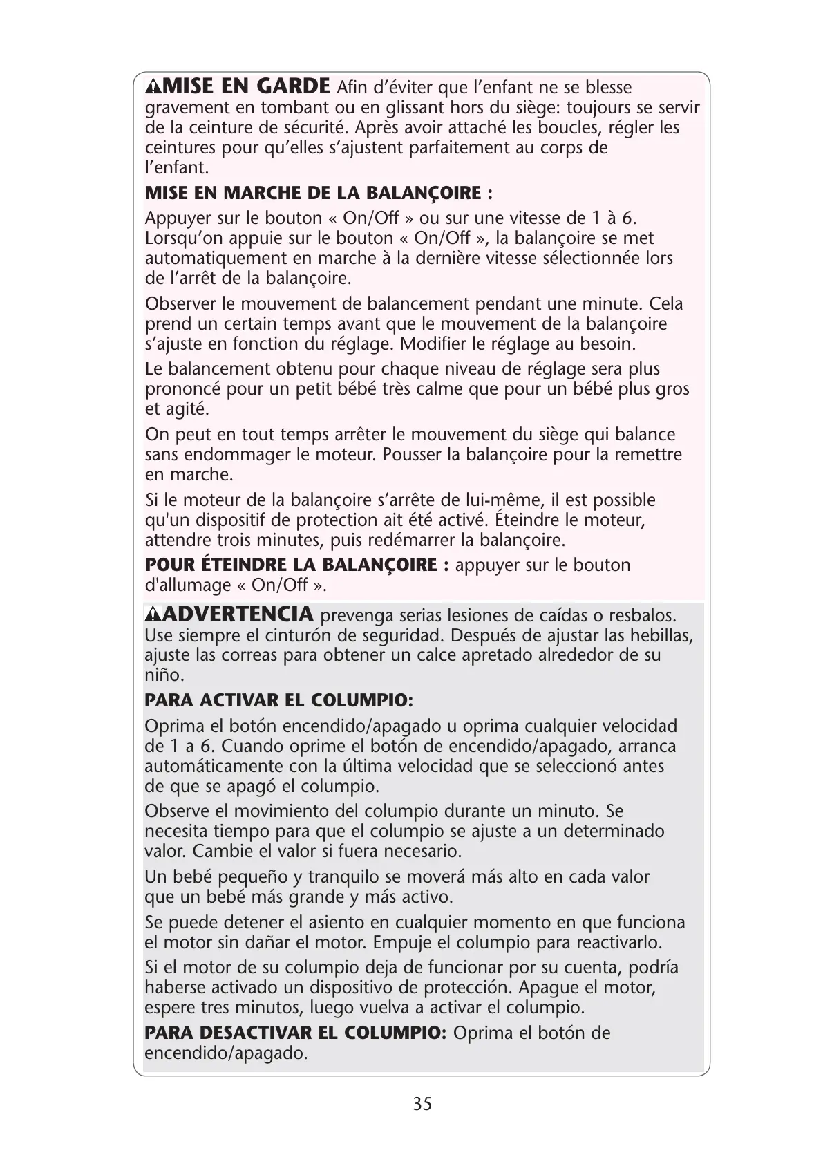 POUR ÉTEINDRE LA BALANÇOIRE : APPUYERSURLEBOUTON
