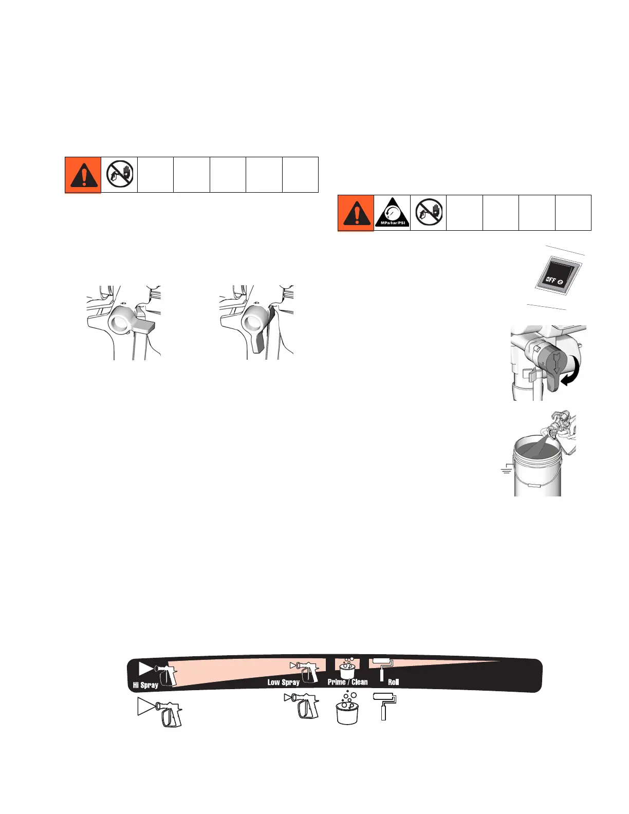 NOTE: To select function, align symbol on pressure control knob with setting indicator on sprayer.