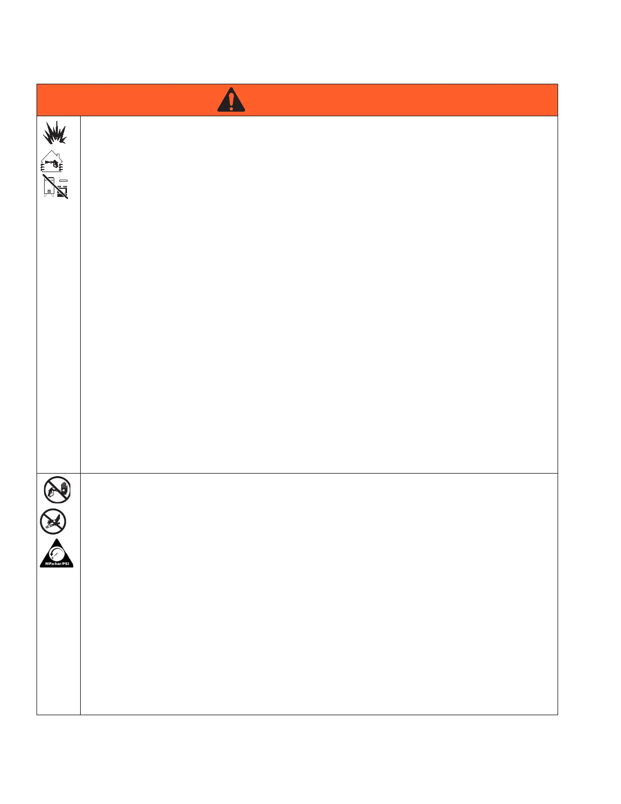 • Sprayer generates sparks. When flammable liquid is used in or near the sprayer or for flushing or