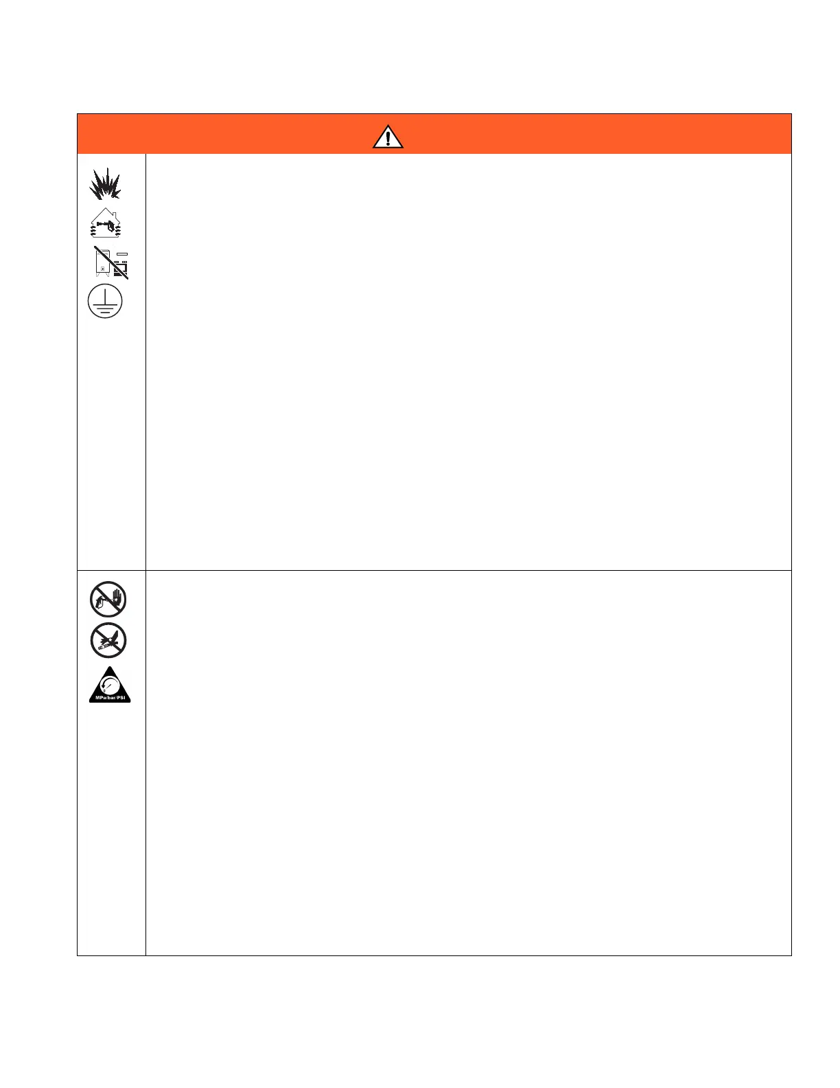 • Sprayer generates sparks. When flammable liquid is used in or near the sprayer or for flushing or clean-