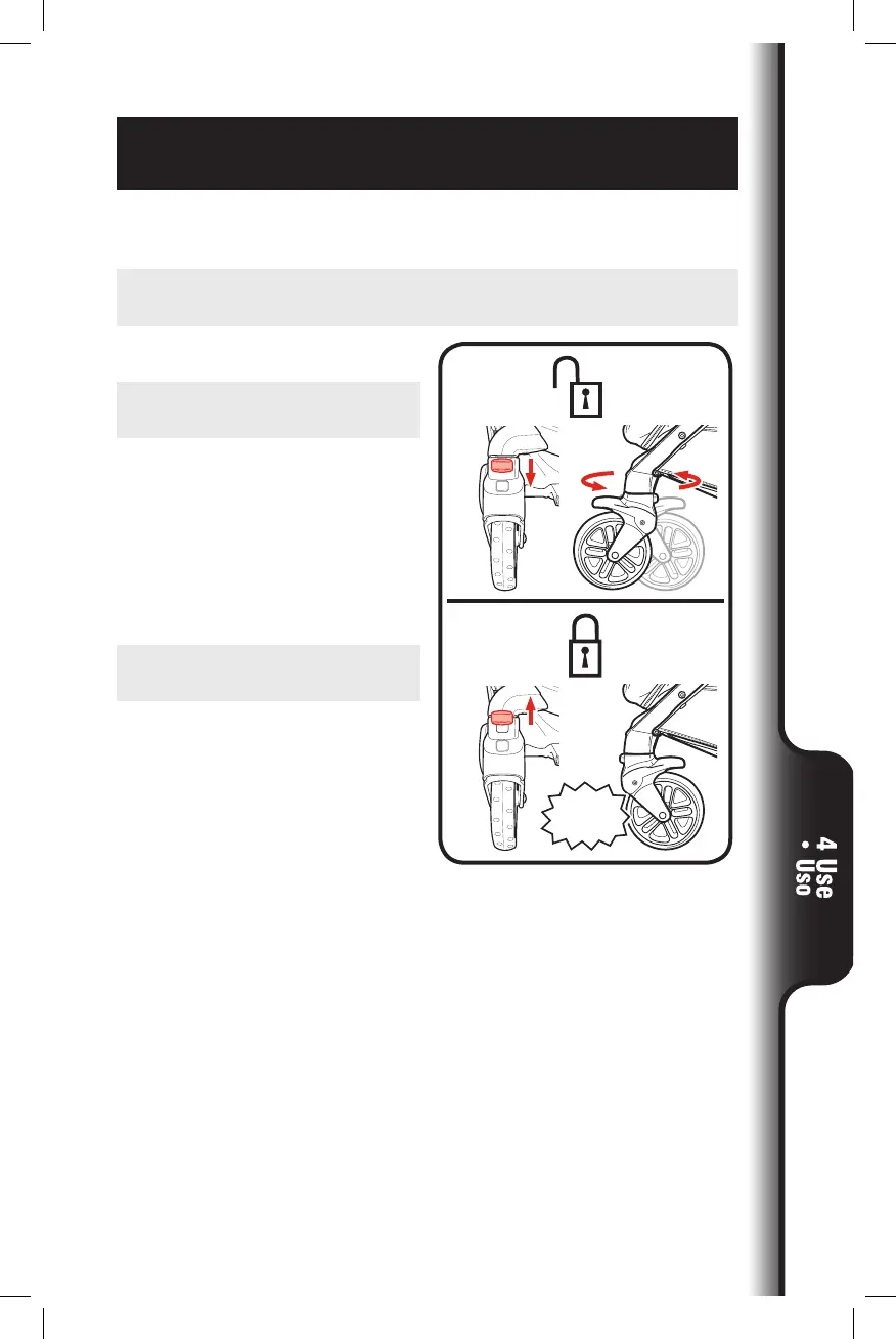 Las ruedas giratorias delanteras se traban para el uso en superficies