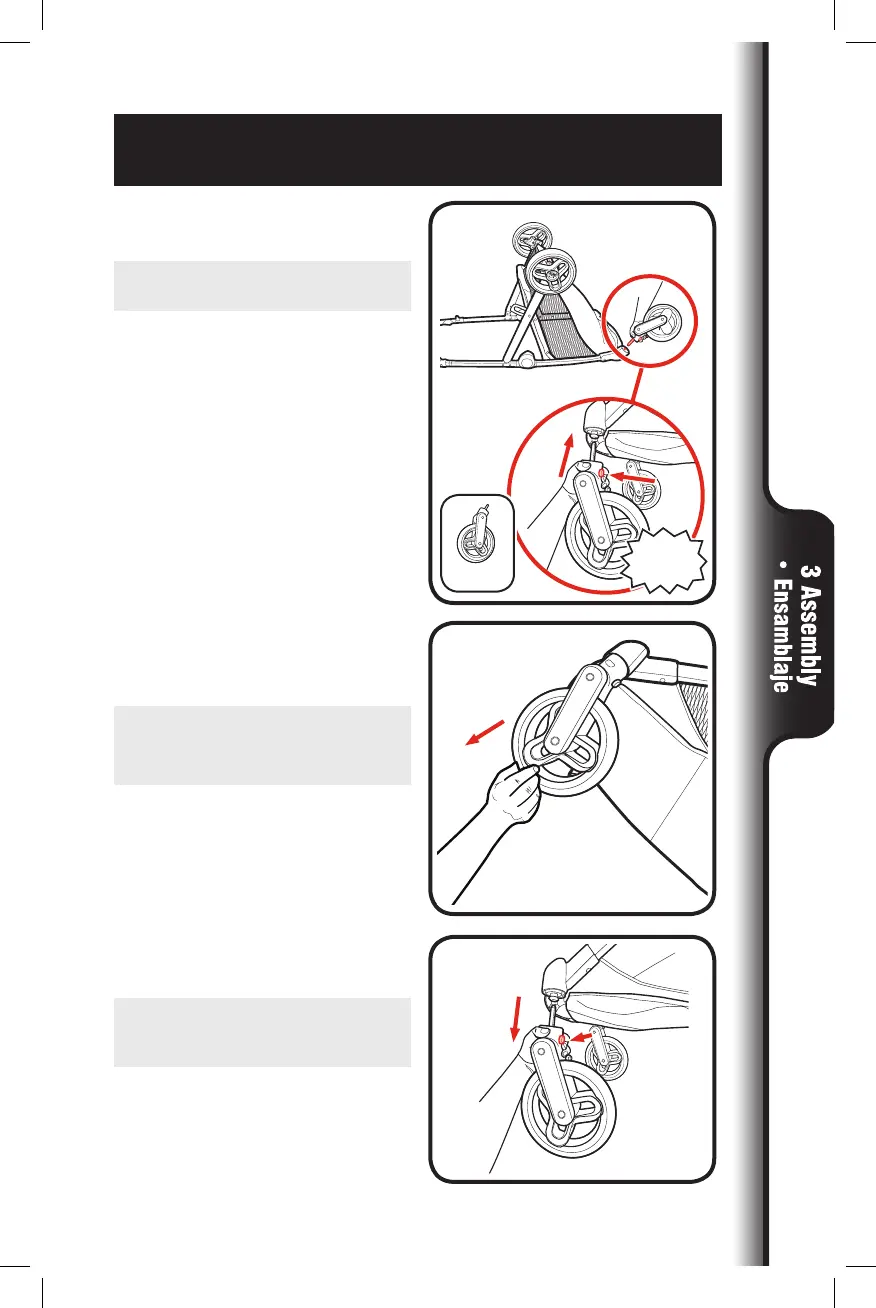 1. Attach front wheels to stroller as