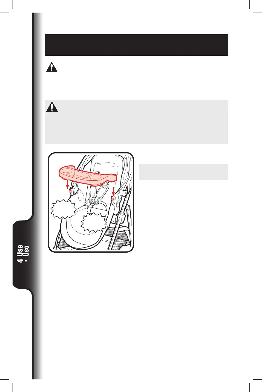 el niño. Use cuidado cuando traba la bandeja en el cochecito si hay un niño en