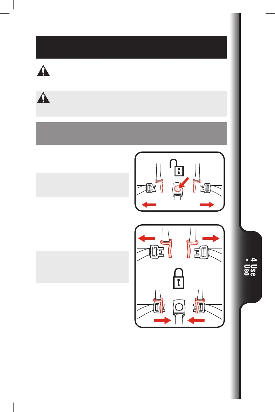 1. To open, press button on buckle
