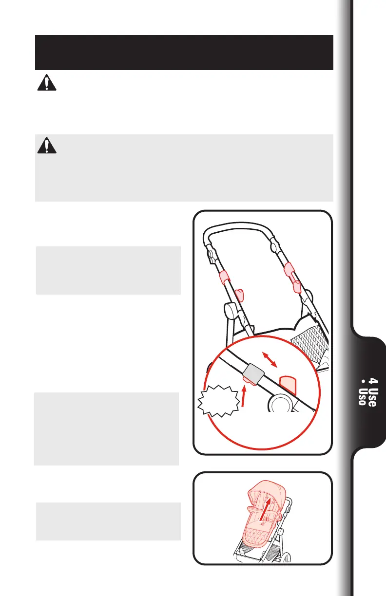 ambos costados. Cuando realiza ajustes al asiento del cochecito, asegúrese