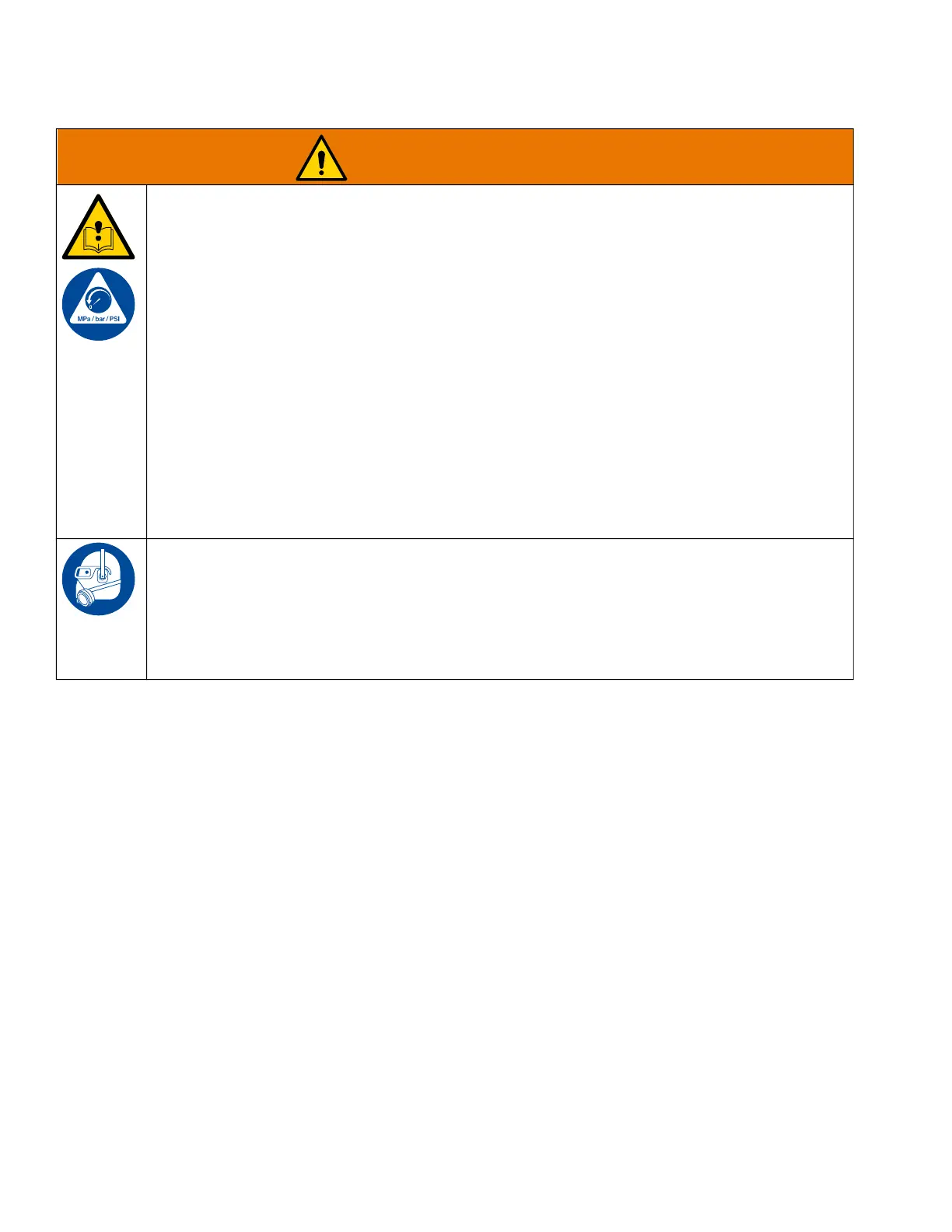 • Turn off all equipment and follow the Pressure Relief Procedure when equipment is not in use.