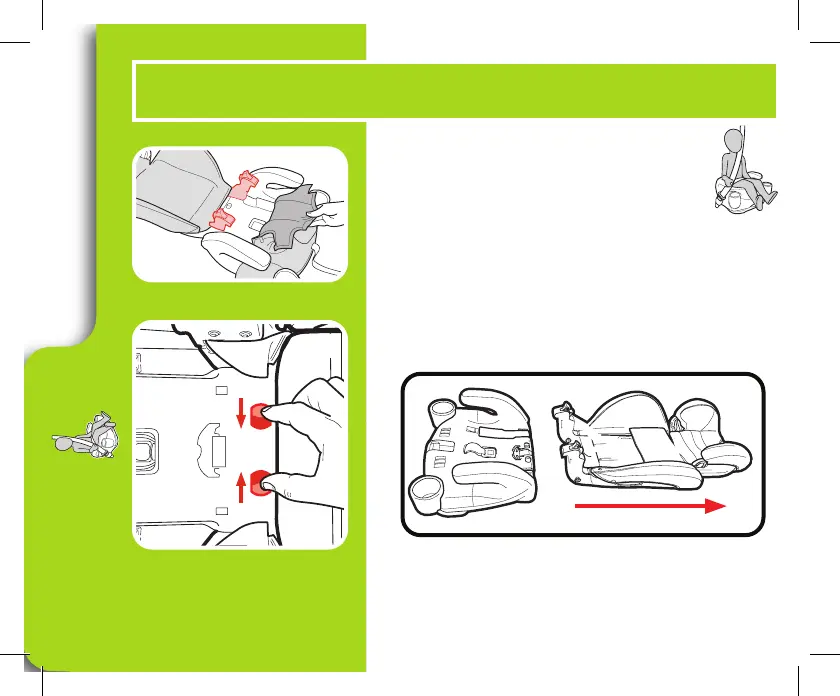 B. Squeeze the 2 buttons near the seat crease