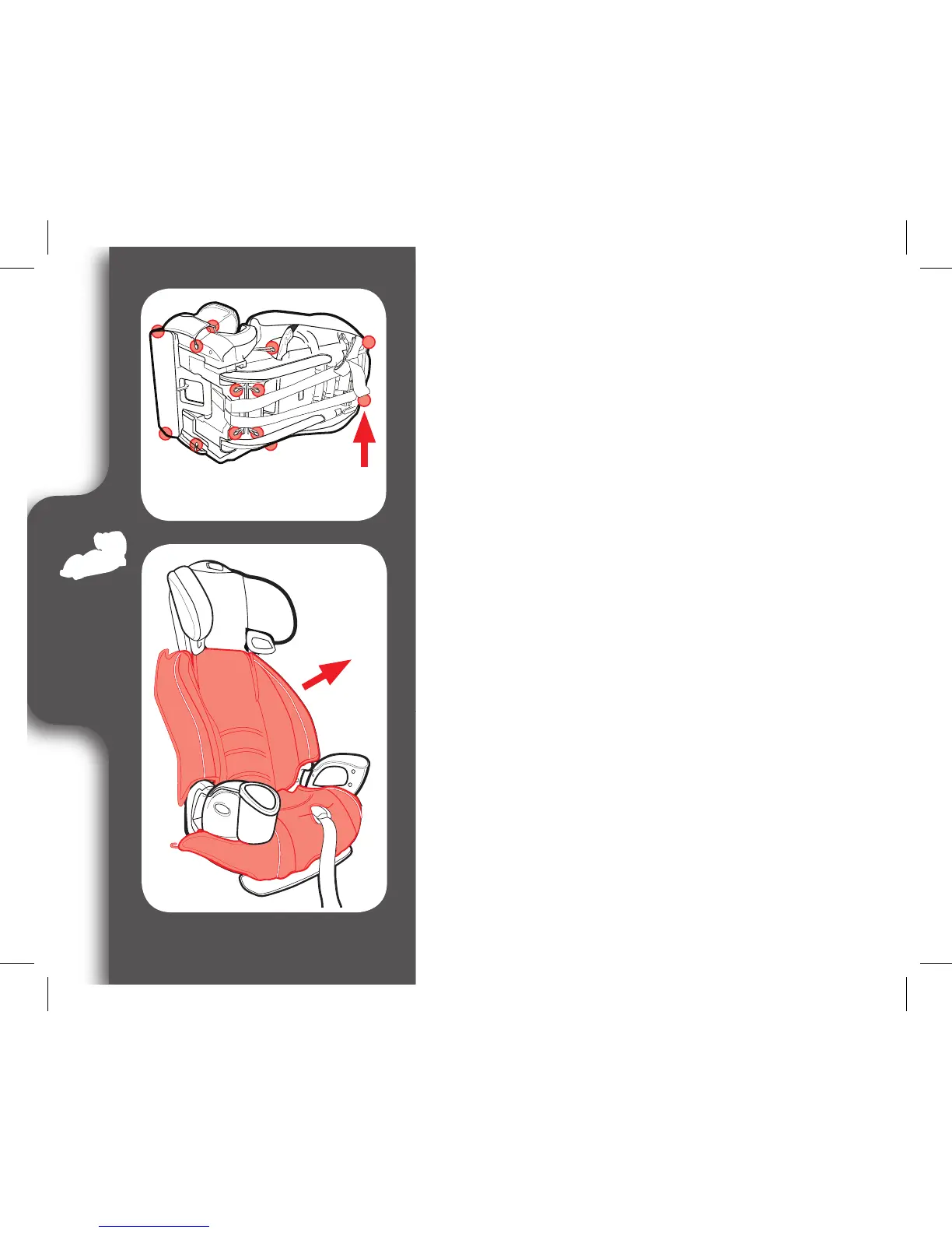 To remove, unhook elastic loops from seat