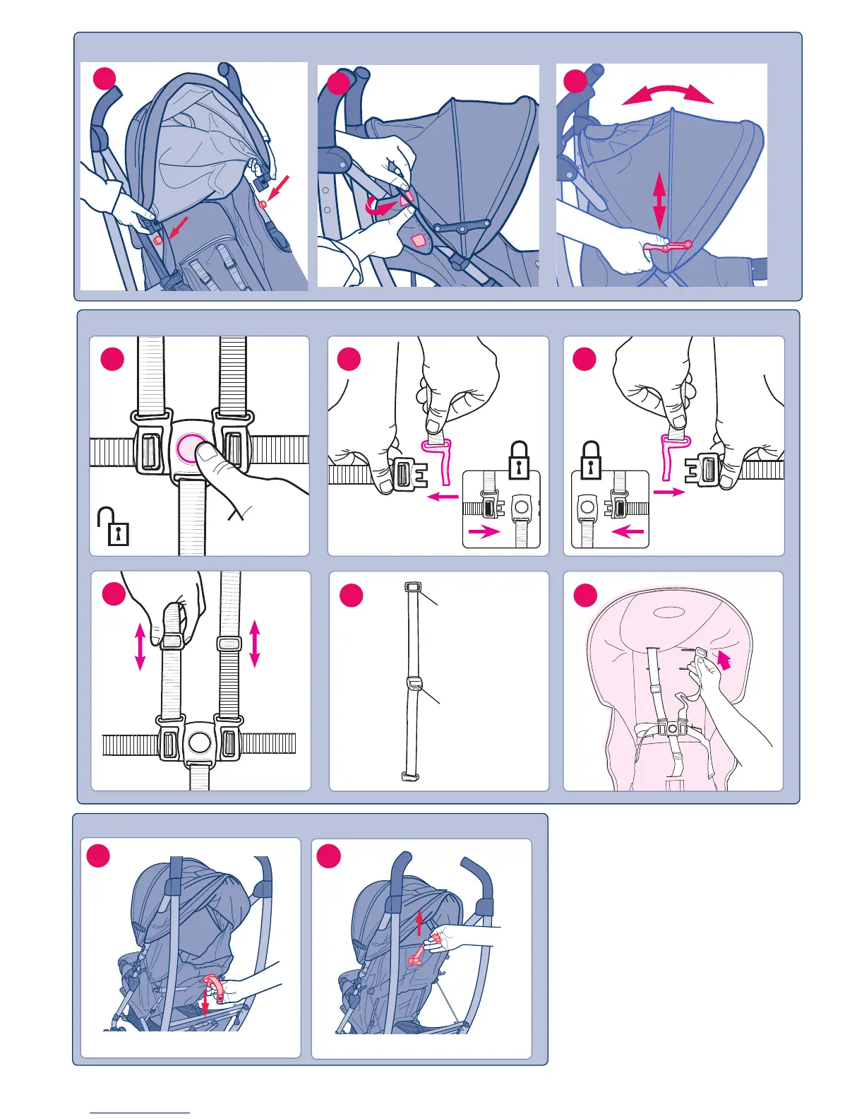 Graco nimbly - Operation and Features; Attaching and Adjusting the Hood; Securing Your Child; Adjusting Backrest Recline