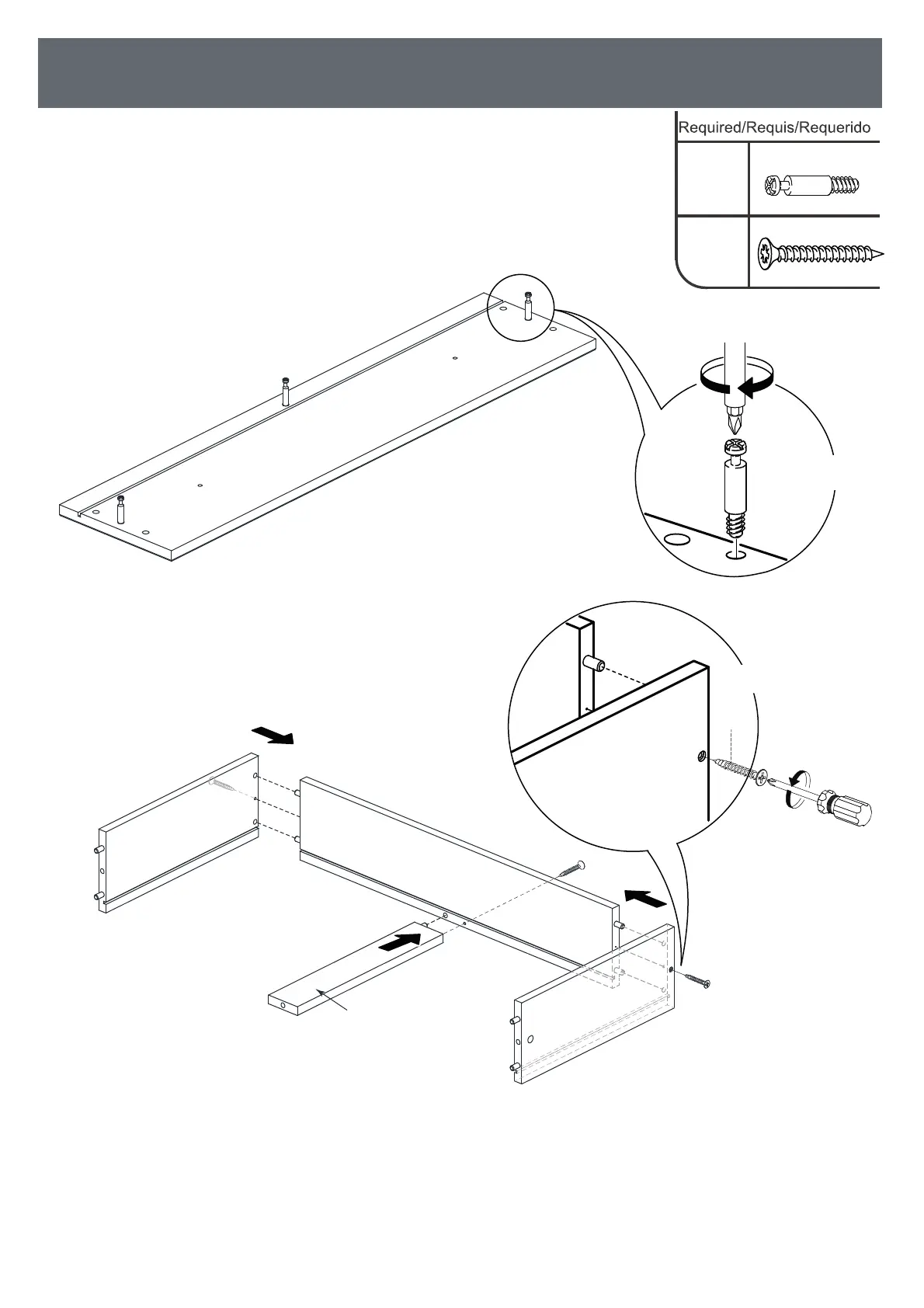 - Insert B(x3) and C(x3) into A(x3) ,Screw 1(x6) through A(x3) into A(x3)